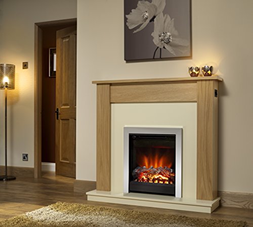 PRODUCT DESCRIPTIONS:Be Modern Lyndhurst Fire suite with 2 year warranty. Key Features & Benefits ◾1210mm (48") one box electric suite for easy handling ◾Available in Natural Oak finish with Marfil Cream back panel and hearth or Warm Oak finish with Marfil Cream back panel and hearth. Both come complete with a widescreen LED electric fire featuring Chrome trim ◾Featuring control switches conveniently mounted on the side of the surround for easy access and operation ◾Latest flame technology - LED's for long life and low energy consumption ◾1 & 2kW heat settings plus flame effect only setting ◾Thermostatically controlled ◾Realistic log bed ◾No bottom fan - reducing dust accumulation, cleaning and maintenance ◾No chimney or flue required - simple flat wall fix Technical Details Model: 1210mm (48") Finish Options: (mantel / back panel & hearth / fire) Natural Oak / Marfil Cream / Chrome fire Height: 1130mm Width: 1210mm Depth (mantel top): 206mm Hearth (W x D): 1190mm x 330mm Remote Controlled: No Min Heat Input/Output: 1kW Max Heat Input/Output: 2kW Efficiency: 100%