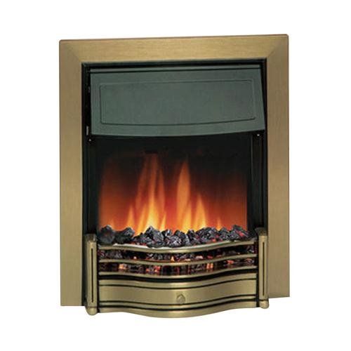 PRODUCT DESCRIPTIONS:2kW Fan heater Choice of heat setting Thermostat Fitted plug Flame effect independent of heat BEAB approval Flame/Fuel Effect Optiflame real coals Antique brass effect Style - Inset Power consumption effect only 130W Depth of inset 55mm
