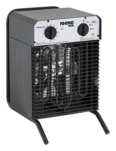 PRODUCT DESCRIPTIONS:The Rhino FH3 is a high output hot air blower. The high efficiency incolloy elements deliver 430 cubic metres of heated air per hour. If you need to heat the whole space rather than individual workstations then this is ideal. Simply pug it in and switch it on. There are three setting: fan only, half power and full power as well as a temperature thermostat