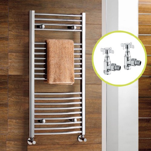 Luxury 1000x500mm Curved Chrome Towel Rail Radiator with Traditional Valves - The Best Cheap Product