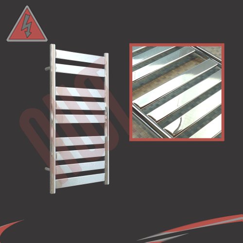 PRODUCT DESCRIPTIONS:This 500mm (w) x 950mm (h) Electric Ruthin designer towel rail has a high quality chrome plated finish with 60mm (h) x 10mm (w) flat bars.