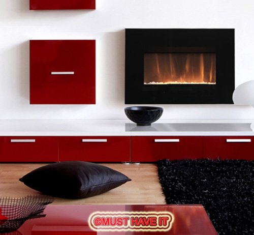 PRODUCT DESCRIPTIONS:This contemporary Electric Black flat Glass Screen Wall Mounted Fireplace will look great in any house and will add a touch of class to your living room.