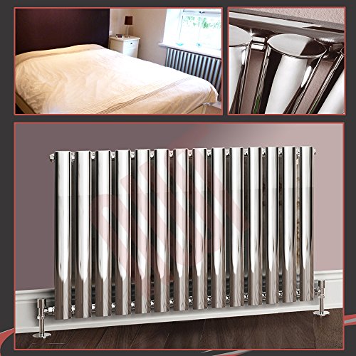 PRODUCT DESCRIPTIONS:The 960mm (w) x 500mm(h) chrome horizontal radiator has a high quality chrome plated finish with 25mm x 50mm vertical oval tubes. We have designed the bar patterns of the towel rails to optimise the volume of horizontal bars for improved heat outputs and spaces for functionality to allow you to hang your towels. The high heat output of our radiators are achieved from the sourcing of high quality steel finished with over 50 microns of chrome